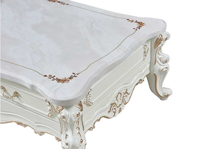 Το στερεό ξύλινο πλαίσιο είναι παχύ και σταθερό, εύρωστο και ανθεκτικό, και έχει την έξοχη ικανότητα ρουλεμάν. Προσθέτει τα σημεία στο γενικό οικογενειακό περιβάλλον. Η κομψή και ατμοσφαιρική μορφή, που συνδέεται με το σαφές και φυσικό μαρμάρινο σχέδιο, κάνει αυτό το τραπεζάκι σαλονιού να φανεί εξαιρετικά κομψό και καθαρισμένο.
