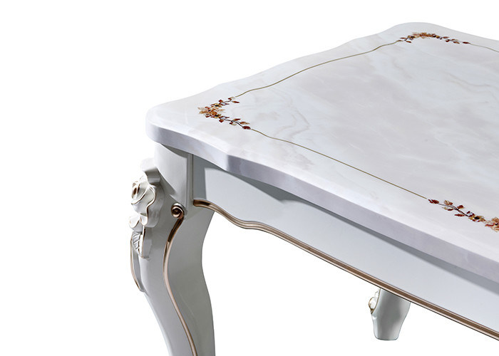 Υπάρχουν έξοχα χαρασμένα σχέδια στις πλευρές και τα πόδια του να δειπνήσουν πίνακα. Τα πόδια του να δειπνήσουν ευρωπαϊκός-ύφους πίνακα χρησιμοποιούν ένα χαρακτηριστικό σχέδιο στηλών, το οποίο είναι το πιό χαρακτηριστικό αντιπροσωπευτικό στοιχείο του ευρωπαϊκού ύφους. Ο γενικός να δειπνήσει πίνακας είναι πολυτελής και ρομαντικός, και το γενικό τόξο του να δειπνήσει πίνακα είναι όμορφο, δίνοντας μας μια όμορφη απόλαυση.